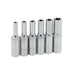 Set of 1/4""D deep Star profile sockets, from E4 to E10, manufactured from satin finish chrome vanadium.