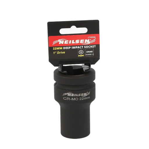 Neilsen1in DR Impact Socket 22mm ●For both manual and impact wrenches●Can be fixed on impact wrench by pin and O-ring●Impact Socket●Material: CR-MO●Heigh...
