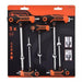 The Tactix hex keys have a T-handle attached, ideal for driving fasteners. A flexible ball end allows 25 degrees of angle movement. Included in this set are sizes 3, 4, 5, 6, and 8mm. Chrome vanadium steel material provides these tools with strength and durability.