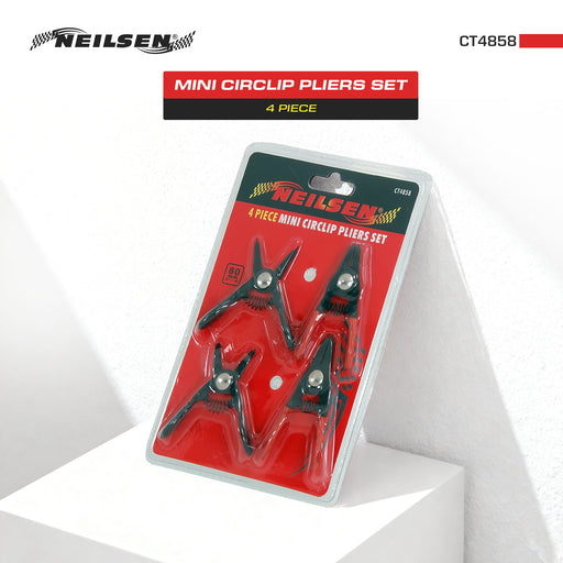 NeilsenCirclip / Snap Ring Pliers 4pc Set225mm Internal straight tip210mm Internal 90 degree tip225mm External straight tip210mm External 90 degree tip