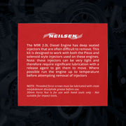 The M9R 2.0L Diesel Engine has deep seated injectors that are often difficult to remove. This kit is designed to work with both the Piezo and solenoid style injectors used on these engines. Note: these injectors can be very tight and therefore require significant lubrication with a release agent to get them to move. Where possible run the engine up to temperature before attempting removal of injectors.