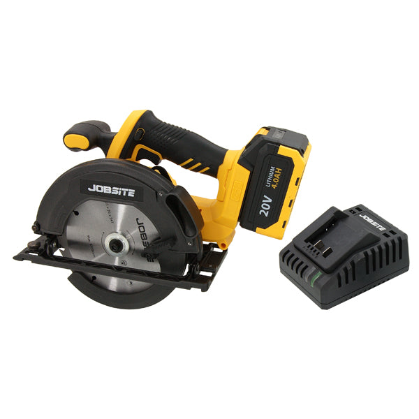 Brushless motor Voltage: 20V No load speed: 4700 rpm Max. cut@90°: 52mm /45°: 40mm Blade diameter: ¿165*¿20*24T Alu. base plate Alu. die upper guard Alu. adjustable shield 1pc 4.0Ah Li-ion Battery 1pc 4.0Ah Faster Charger Accessories: 1pc 165*20*24T TCT blade, 1pc hex key, 1pc parallel guide, 1pc dust pipe