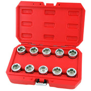 The 10pc CT4768 Locking Wheel Nut Key Set. This master set of tamper-proof sockets is designed specifically for removing the locking wheel nuts on Land Rover vehicles. The set features a hex drive identified with letters A through J and can be used with a 27mm spanner or socket