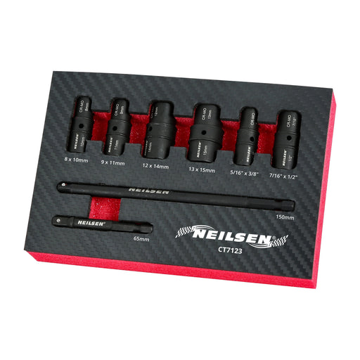 NeilsenIncludes:8pcs 1/2'' nut extractor:14mm, 16mm, 17mm, 19mm, 21mm, 22mm, 24mm, 27mm1pc Rod 1pc 1/2'' Dr adaptorDesigned for use with manual or impact ...