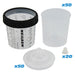 ●Kit includes 50 cup liners, 50 lids with built-in 125-micron fluid strainers, 1 hard cup with retainer ring and 20 cup sealing plugs.
