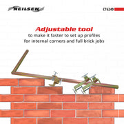 Adjustable tool to make it faster to set up profiles for internal corners and full brick jobs.