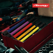 Set Includes: 8, 10, 11, 12, 13, 14mm. High Visibility Color Coding for Quick and Easy Size Identification. Magnetic Nut Setter Metric to Standard 1/4" Hex Drive for Universal Application. Exact Fit, Precision Machined Tip for Reduced Slip. Chrome Vanadium.