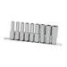 Set of 1/2"DR Deep Star profile sockets, from E10 to E24, manufactured from satin finish chrome vanadium.