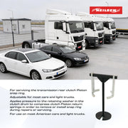 Applies pressure to the retaining washer in the clutch drum to compress clutch Piston return springs in order to remove or install snap ring during repairs or servicing.