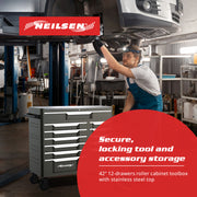 CT6940 - 42inch 12 Drawer Roller Mobile Tool Cabinet With Stainless Steel Top