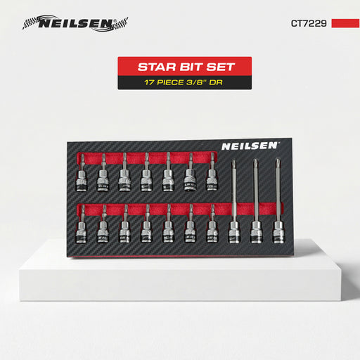 Neilsen17pc T50 Star Bit Set 3/8“Dr14 x T50 Bits 50mm Deep3 x T50 Bits 100mm DeepCRV