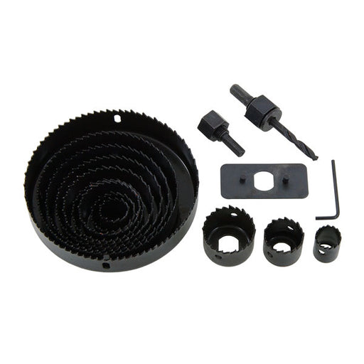 Neilsen16pc Hole Saw SetSizes : 19 | 22 | 29 | 32 | 38 | 44 | 51 | 64 | 76 | 89 | 102 | 127mm2pc Arbor with 6 x 60mm drill2.5mm Hex keyExtension PlateSuit...