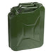 Green jerry can with 20L capacity featuring a leak-proof bayonet closure allowing storage of the can in any position.