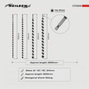 CT3300 - 4pc Auger Drill Set 600mm Long