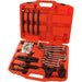 The Heavy Duty Hydraulic Puller Set is an essential tool for any mechanic or DIY enthusiast, designed to efficiently remove gears, bearings, and sprockets with ease. Engineered for durability and strength, this set utilizes hydraulic power to exert significant force, making it capable of tackling even the most stubborn components. With a variety of sizes and configurations, the puller set can accommodate different applications, ensuring versatility in the workshop. The ergonomic design and user-friendly operation allow for quick setup and safe use, minimizing the risk of damage to the parts being removed. Whether working on automotive repair or machinery maintenance, this hydraulic puller set is a reliable solution for achieving precision and efficiency in disassembly tasks.