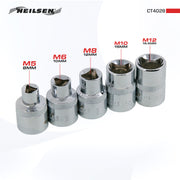 - Set includes five Tri-Point sockets in the following sizes: M5 - 8mm, M6 - 10mm, M8 - 12mm, M10 - 15mm, M12 - 16.5mm